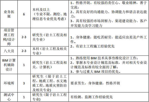 测绘地理信息公司是必赢官网主要专业公司之一,现有员工300余人,注册测绘师30余人,工程师以上职称50余人;是国内测绘资质最齐全的单位之一;已成为国内知名的测绘地理信息服务企业之一。为加强公司业务拓展、生产管理和技术研发能力,我司拟于2017年2月全面启动高校招聘活动,计划招聘测绘工程、地理信息系统、地图编制、工程物探、摄影测量与遥感、土地资源管理等专业高校应届毕业生31人。